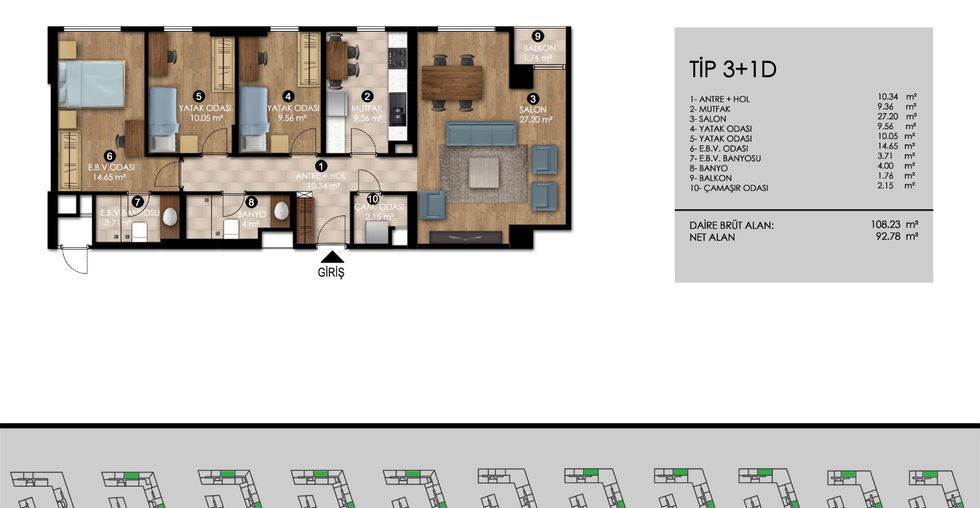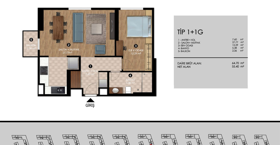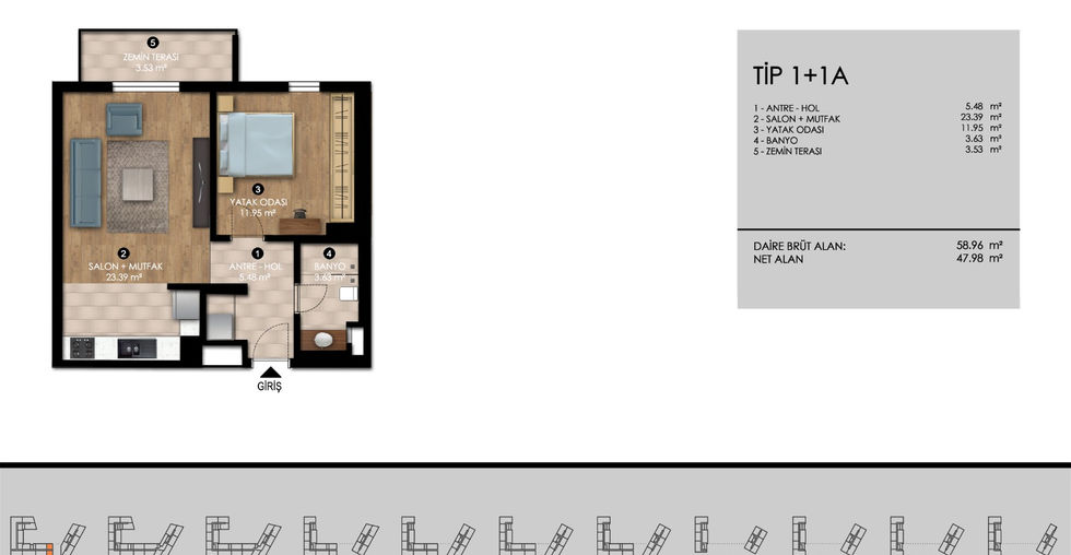 1+1 bedroom apartments sized from 56 m² and for sale starting at ₺2,993,000