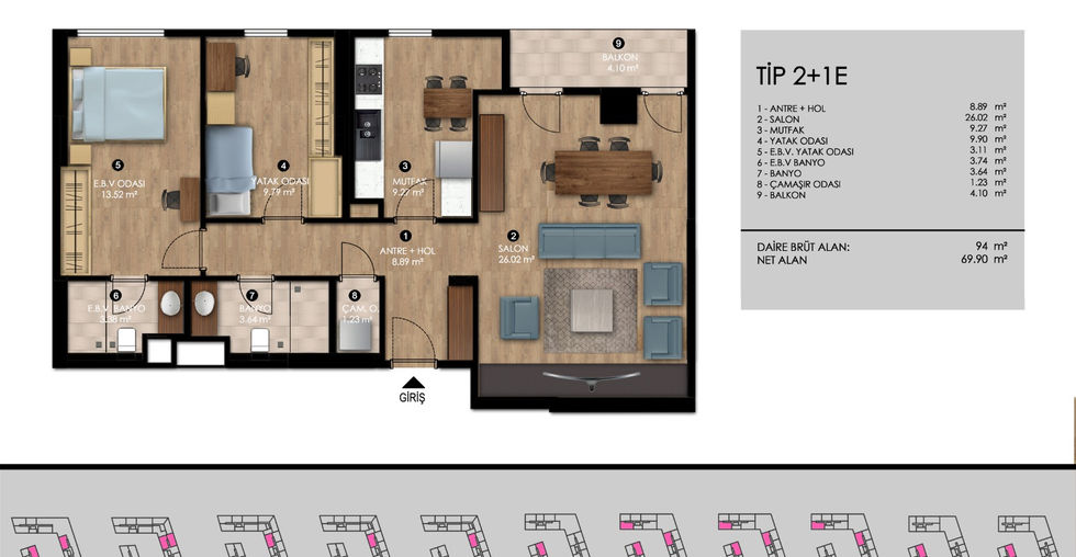 2+1 bedroom apartments sized from 91 m² and for sale starting at ₺3,781,000